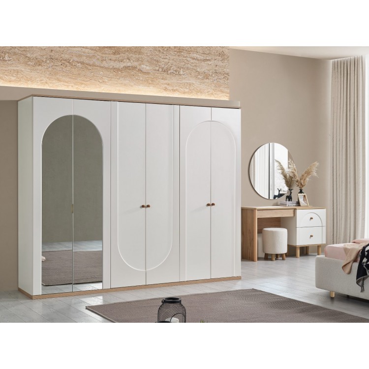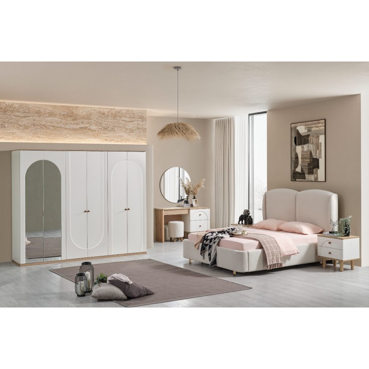 - Takım İçeriği: 6 kapılı dolap,bazalı karyola,2 adet komodin,şifonyer vfe aynasından oluşmaktadır.