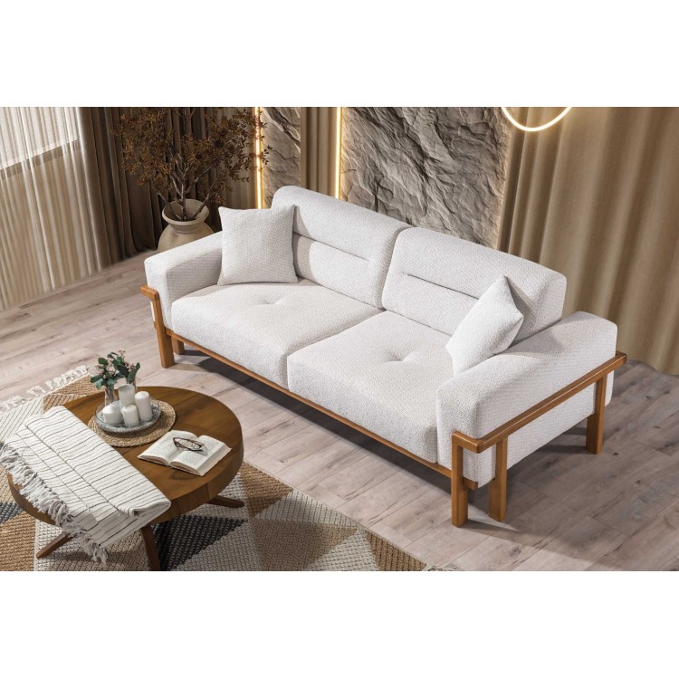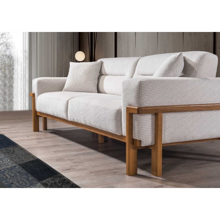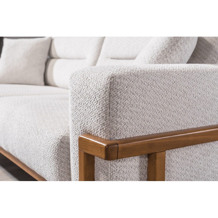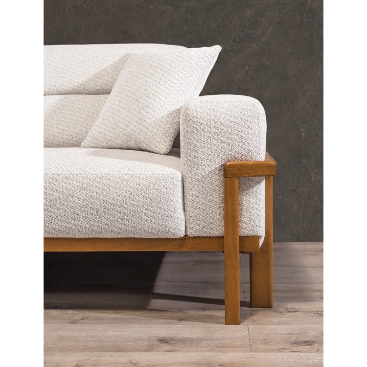 Malzeme Bilgisi | Ürün iskeletinde fırınlanmış gürgen ağacı kullanılmıştır. Ayaklar ahşap malzemedir. 32 danste ekstra forta sünger kullanılmıştır. 1. katile silinebilir ithal kumaş kullanılmıştır. | |
