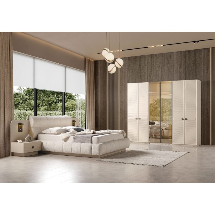 - Takım İçeriği: 6 KAPILI DOLAP,BAZALI KARYOLA+BAŞLIK,2 ADET KOMODİN,ŞİFONYER VE AYNASINDAN OLUŞMAKTADIR.